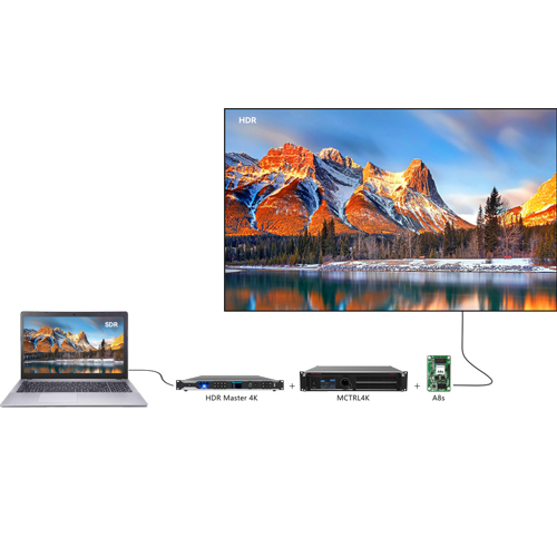 Hỗ trợ chuyển đổi nguồn video SDR sang HDR, mang lại trải nghiệm hình ảnh sống động và ấn tượng hơn. Có thể cung cấp giải pháp HDR toàn liên kết bằng cách ghép nối card thu MCTRL 4K và A8s. Tải đầu ra có thể lên đến 8K bằng cách ghép nối 4 thiết bị.