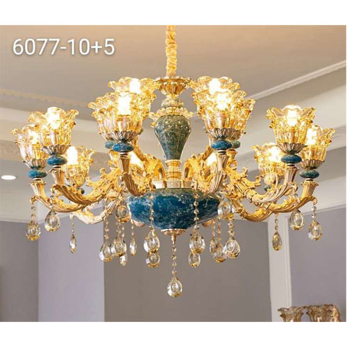 - Bình thường hiếm khi nào người ta sử dụng màu xanh bích trong thiết kế đồ nội thất vì sợ sự tẻ nhạt. Nhưng với thiết kế đèn chùm pha lê nhập khẩu này màu xanh đã thực sự phát huy giá trị của nó. Giữa màu đèn vàng, màu xanh nổi lên làm nổi bật tổng thể. Đây chính là điểm nhấn ấn tượng trong thiết kế của mẫu đèn chùm đẹp này, nó rất phù hợp với không gian tân cổ điển theo phong cách châu Âu.