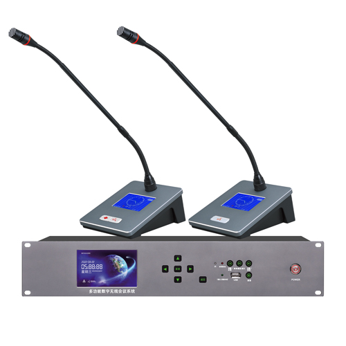 Hệ thống này là một bộ hệ thống hội nghị không dây điều khiển truyền thông kỹ thuật số hoàn chỉnh sử dụng băng tần UHF, đáp ứng mọi chức năng không dây, loại bỏ việc lắp đặt cáp rườm rà, vùng phủ sóng tín hiệu có thể di chuyển tự do, bố trí địa điểm dễ dàng và thuận tiện. Hệ thống có nhiều chế độ họp khác nhau và có thể kết nối camera độ nét cao để đạt được chức năng theo dõi video hội nghị. Hệ thống này dễ vận hành, dễ lắp đặt, tiết kiệm và thiết thực, là lựa chọn tốt nhất cho kỹ thuật hội nghị.