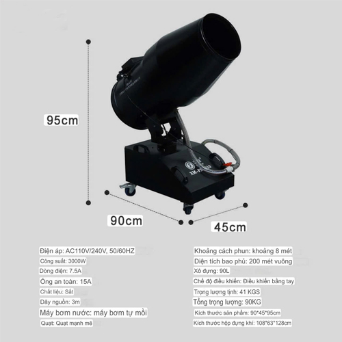Khoảng cách phun: 8 mét