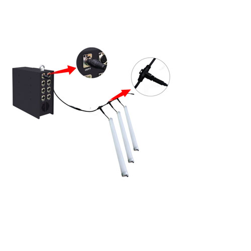 Bóng lỗ có thanh nối, có thể tạo ra nhiều hình dạng ba chiều khác nhau. Lắp đặt vòng treo. Treo đèn LED ống 360 độ bằng vòng. Lắp đặt chân đế . Làm cho đèn LED ống đứng trên sàn bằng chân đế. Cách kết nối và điều khiển. Kết nối đèn LED ống với bộ điều khiển.