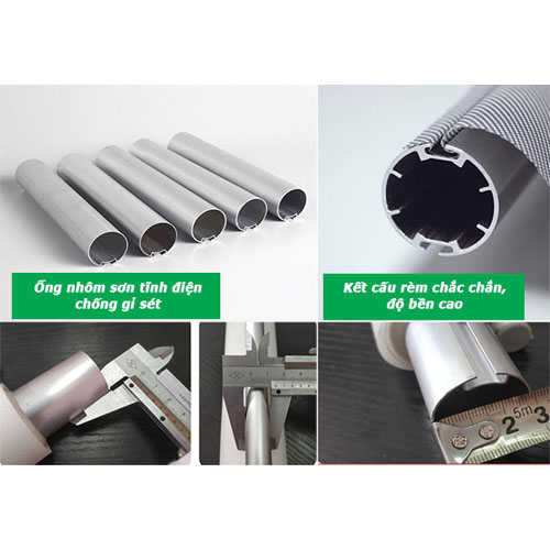 Ống nhôm cuộn rèm được sơn tĩnh điện chống gỉ sét, có độ bền cao.