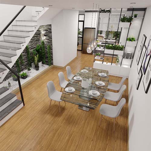 Bề mặt sàn vân sần chống trơn trượt tốt, đảm bảo an toàn cho người sử dụng khi di chuyển trên sàn