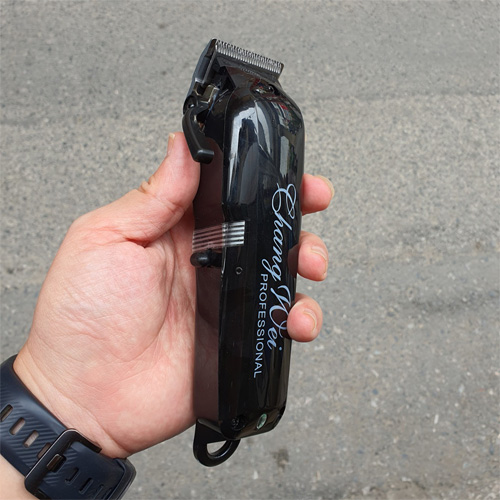 Tông đơ cắt tóc chuyên nghiệp Chang wei C8 có khối lượng 376g,cầm rất vừa tay.